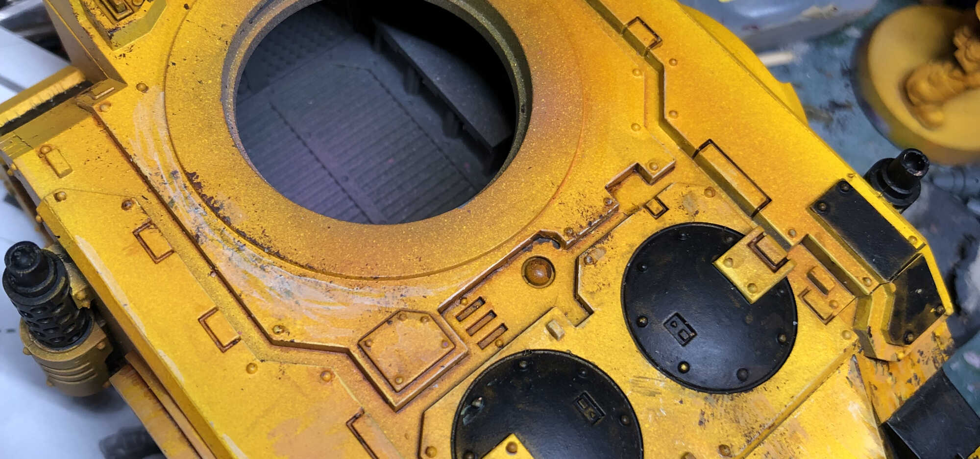 The second coat of screaming skull was thicker for the actual scratches, which gave me exactly what I was looking for where the turret rotates against the chassis.