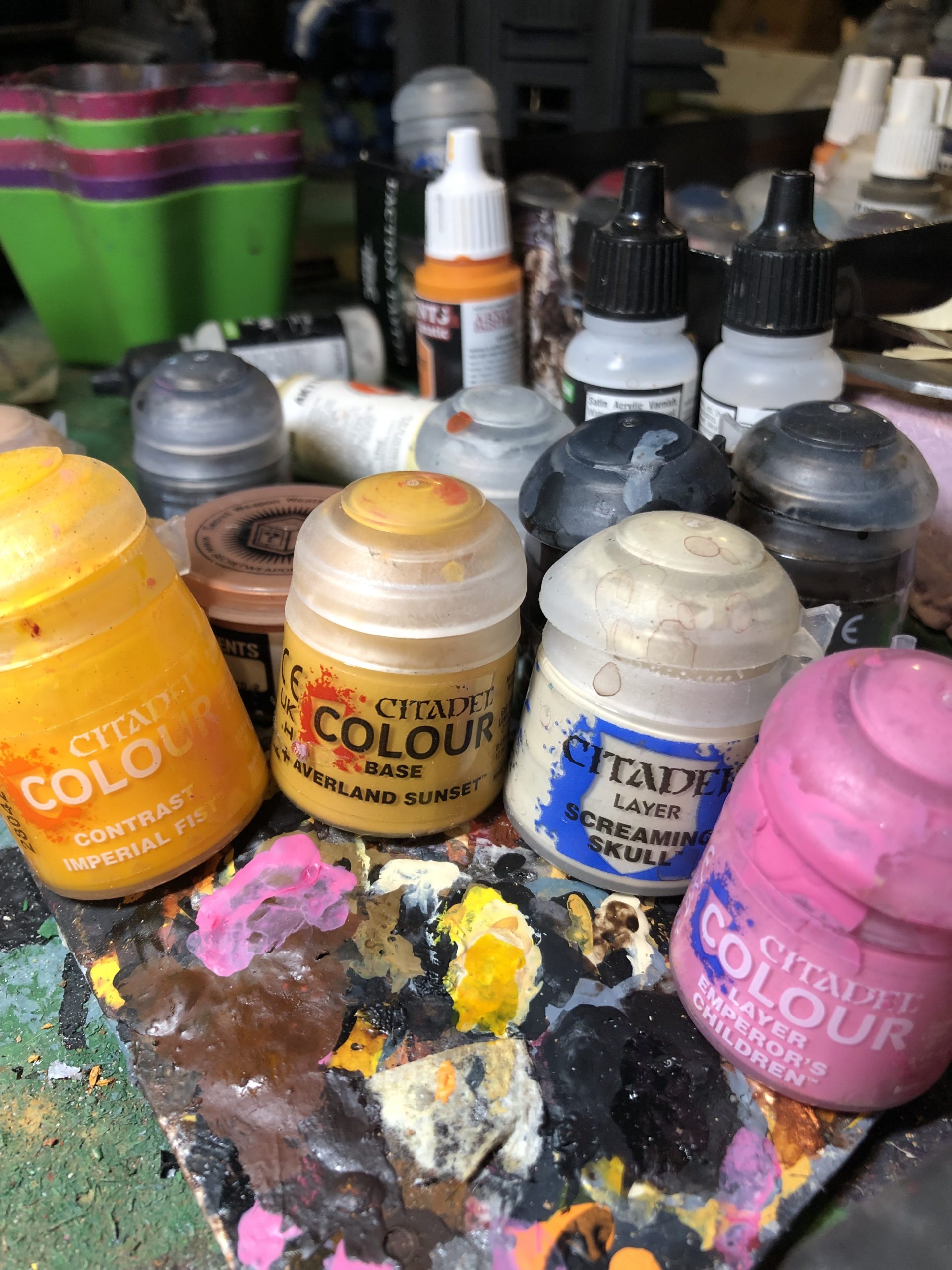 The big one was using screaming skull glazes. Because of It’s lack of saturation, when layered on top of other highly saturated colors, it makes the areas covered by it look bleached almost by wear.